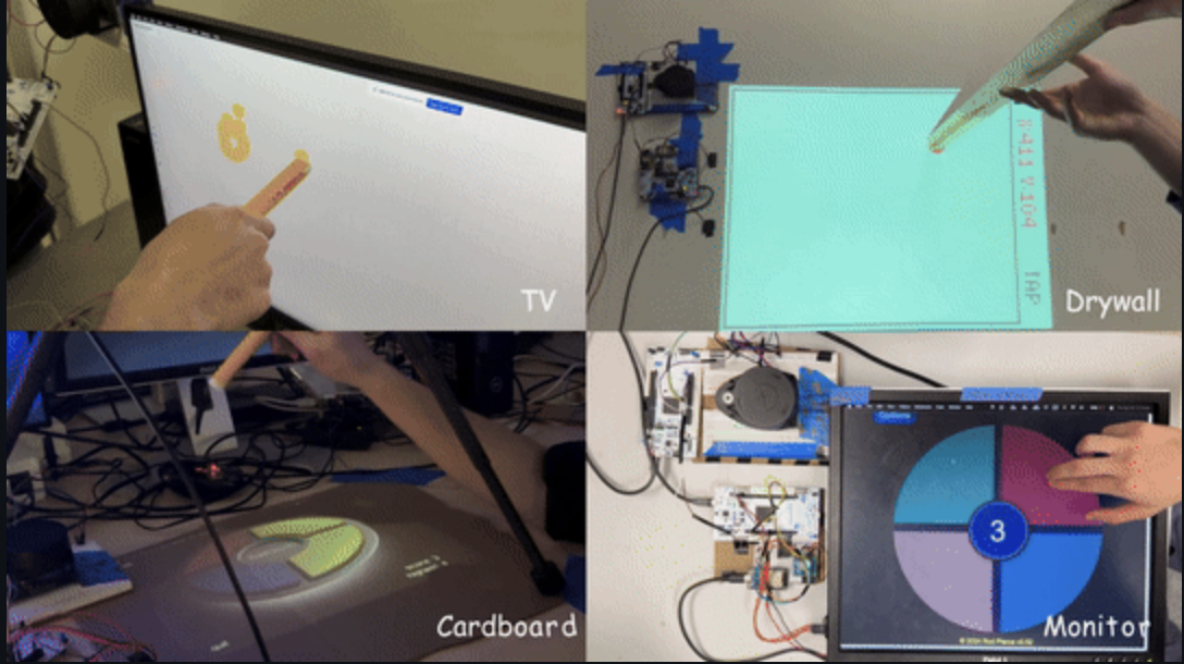 Turn any flat surface into an interactive touchscreen by combining LiDAR-based position tracking with vibration sensors that classify taps, drags, and other gestures in real time.